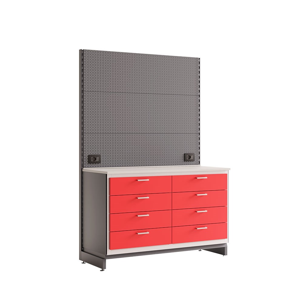 Silca Point shop display unit double cabinet with backing board 4 drawers right, 4 drawers left.