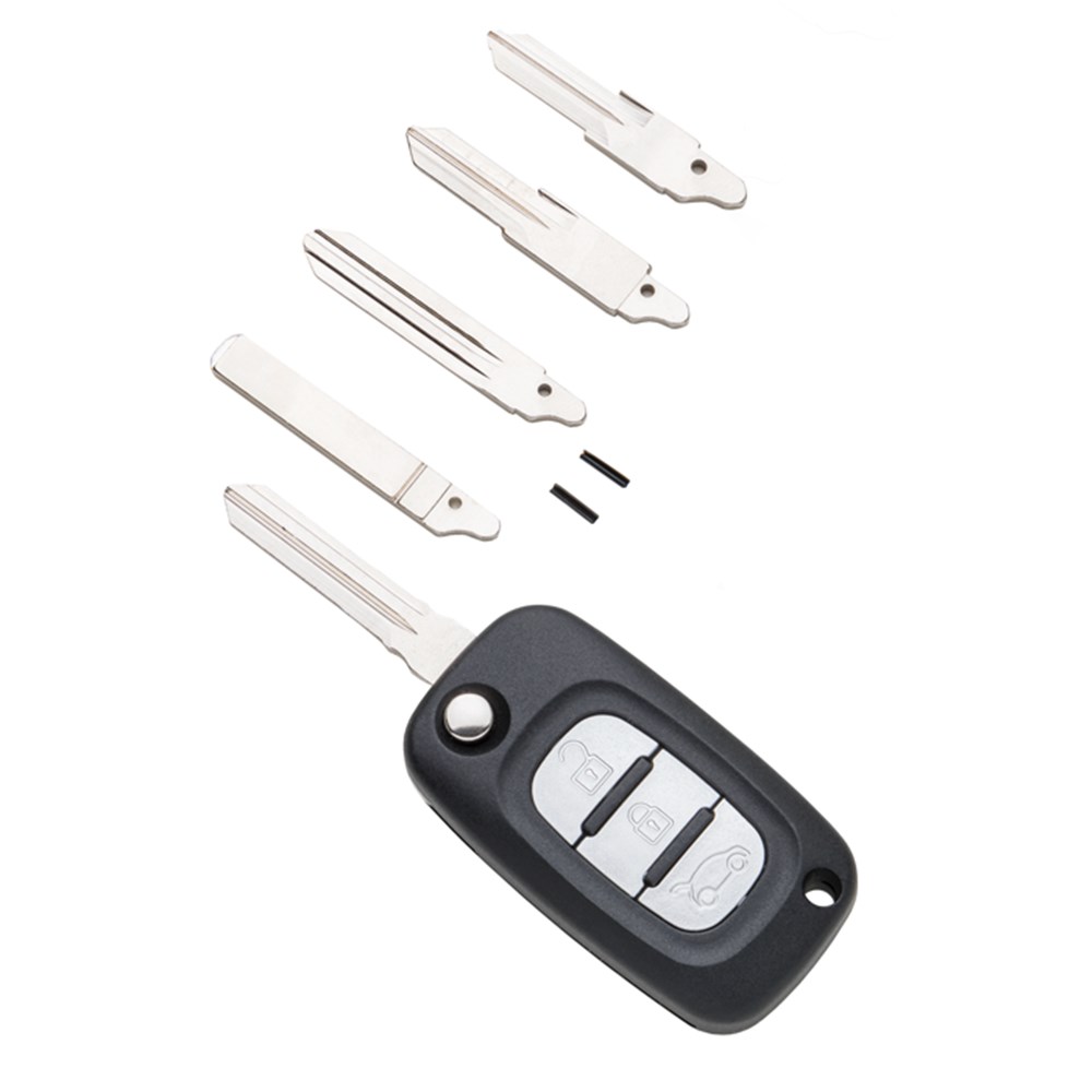The 3 button Silca Remote Car Keys for Dacia®, Nissan® and Renault® have a similar design as the original keys and are supplied ready-to-programme with the PCB, transponder and flip blade included.