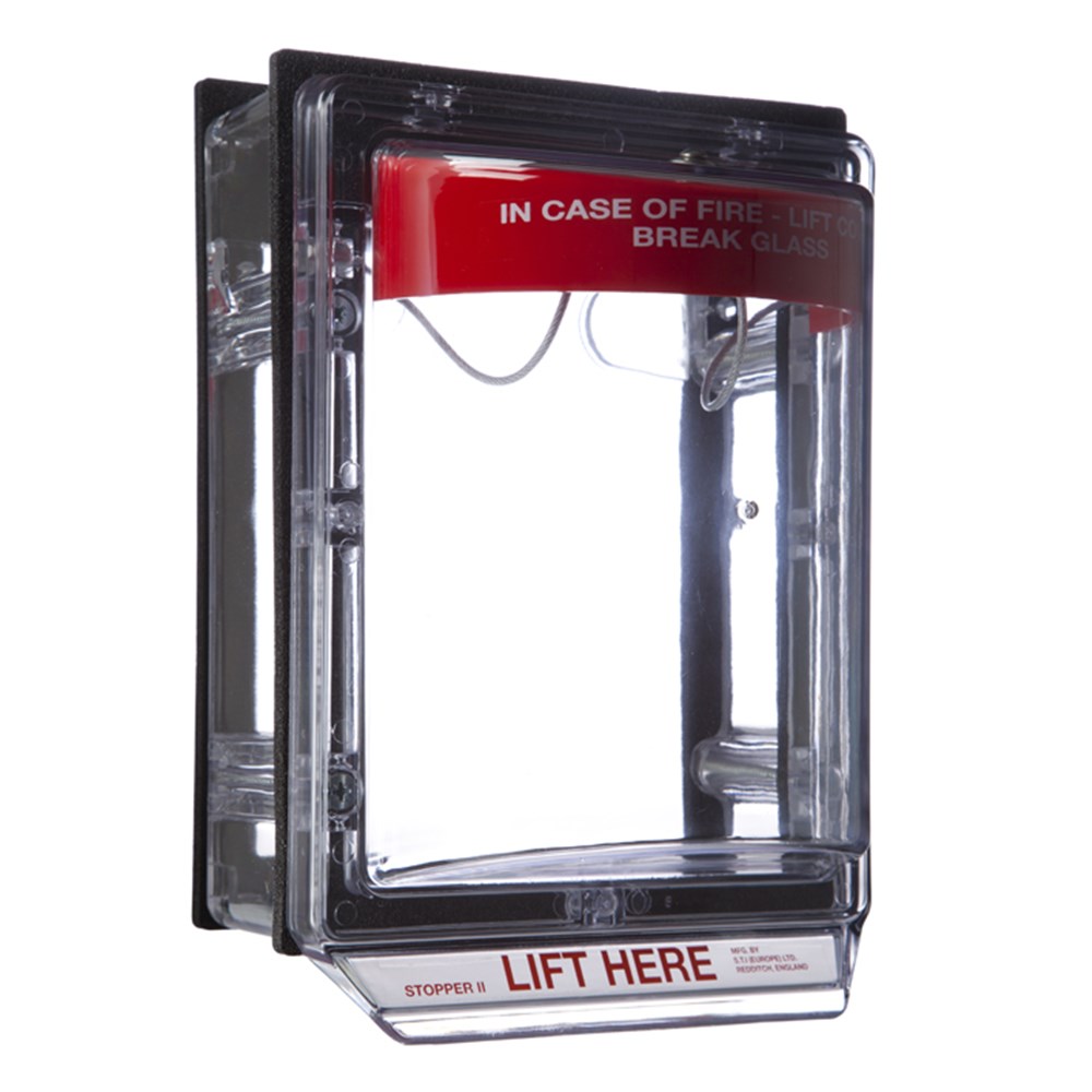 Physically larger than the Weather Stopper, the Weather Stopper II® is a tough, clear polycarbonate cover designed to protect manual call points and other devices where protection from the environment is necessary, such as car parks, food processing factories and swimming pools. It is also ideal for saline atmospheres. It is available for flush or surface mounted devices with a variety of cable entry gaskets.