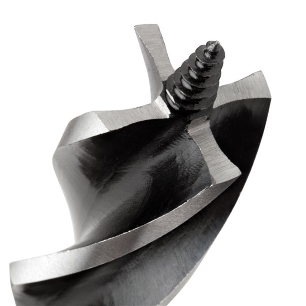 - Coarse screw point draws the bit into the work piece providing fast drilling in hard and soft woods.