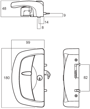 External (single) 5 pin cylinder, offset outer pull, universal strike.