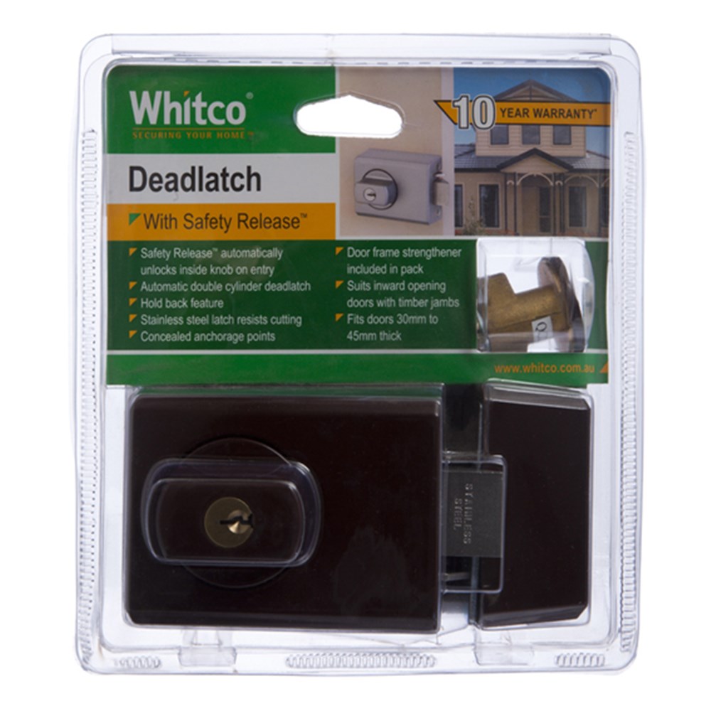 Whitco W75 Double Cylinder Deadlatch with Safety Release and Timber Frame Strike in Mahogany - W750612